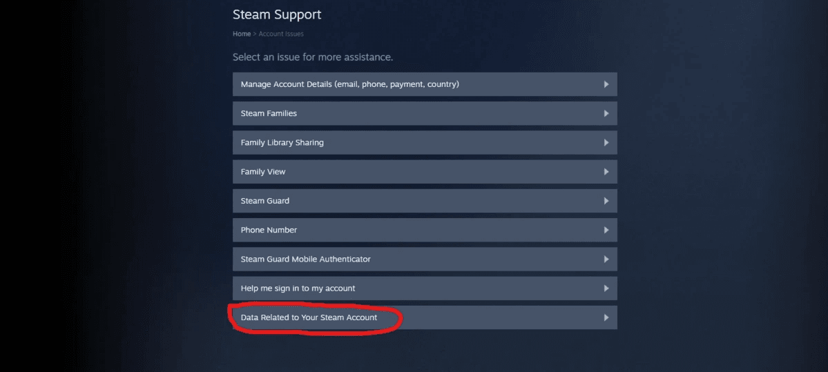 - Click "My Account" and then "Data Related to Your Steam Account"