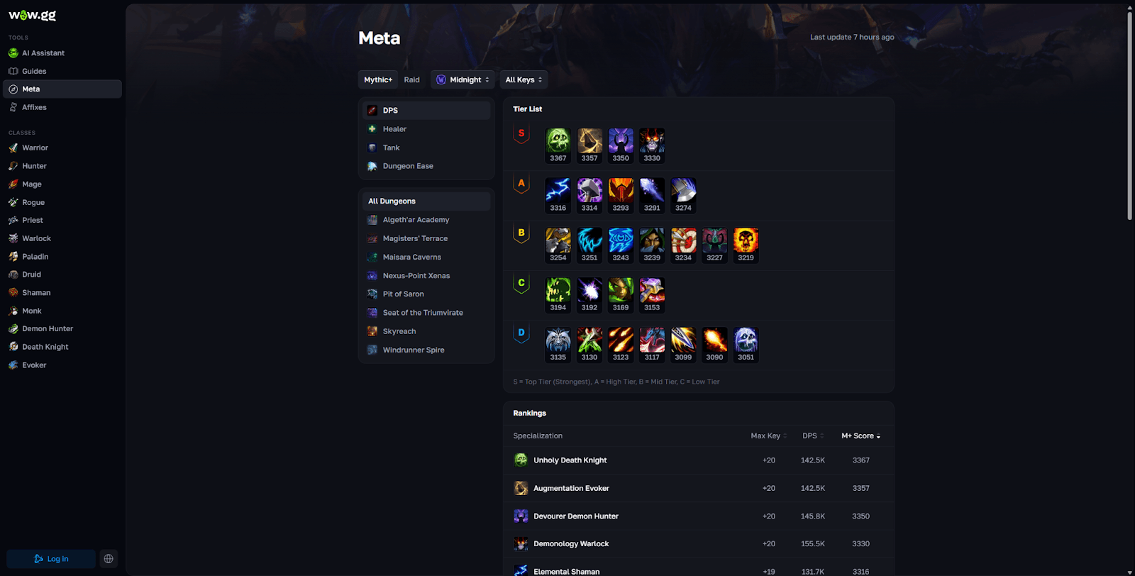 A new affix, Lindormi's Guidance, runs at lower keystone levels. It highlights priority targets, reduces their health, and removes the death-timer penalty on wipes. Functionally an onramp for returning players who aren't current on routes and pulls. For spec selection before pushing keys, the wow midnight dps tier list reflects live tuning - the meta shifted multiple times since Season 1 opened.