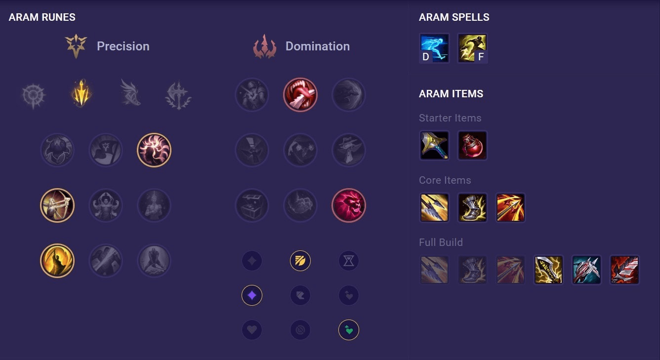 - Lethal Tempo with Precision primary tree provides the best rune setup for sustained DPS in ARAM teamfights