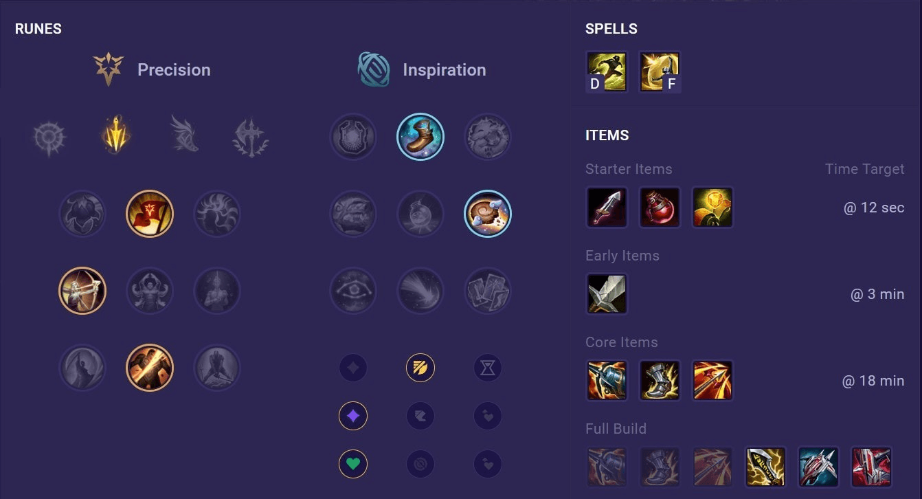 - Core build focuses on critical strike items like Infinity Edge and Runaan’s Hurricane, with Lethal Tempo as the optimal keystone rune